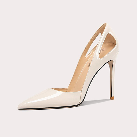 Chaussures à talons hauts pour femmes avec semelle de couleur contrastante Talon mince simple Finition brillante Bouche peu profonde Bout pointu Fermeture à enfiler