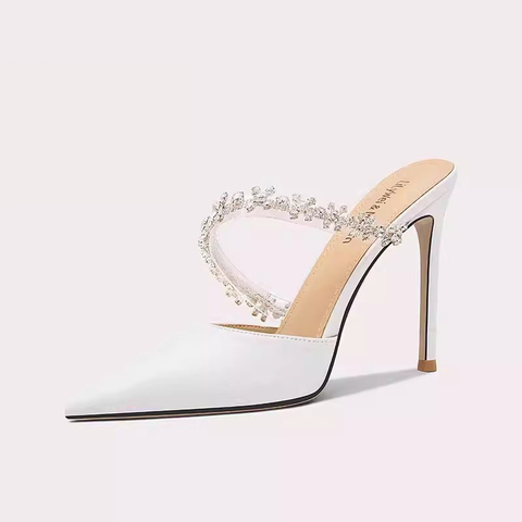 Chaussures de mariée de mariage blanc pour femmes Sexy bout pointu talons hauts strass été Slingback respirant hauteur augmentant